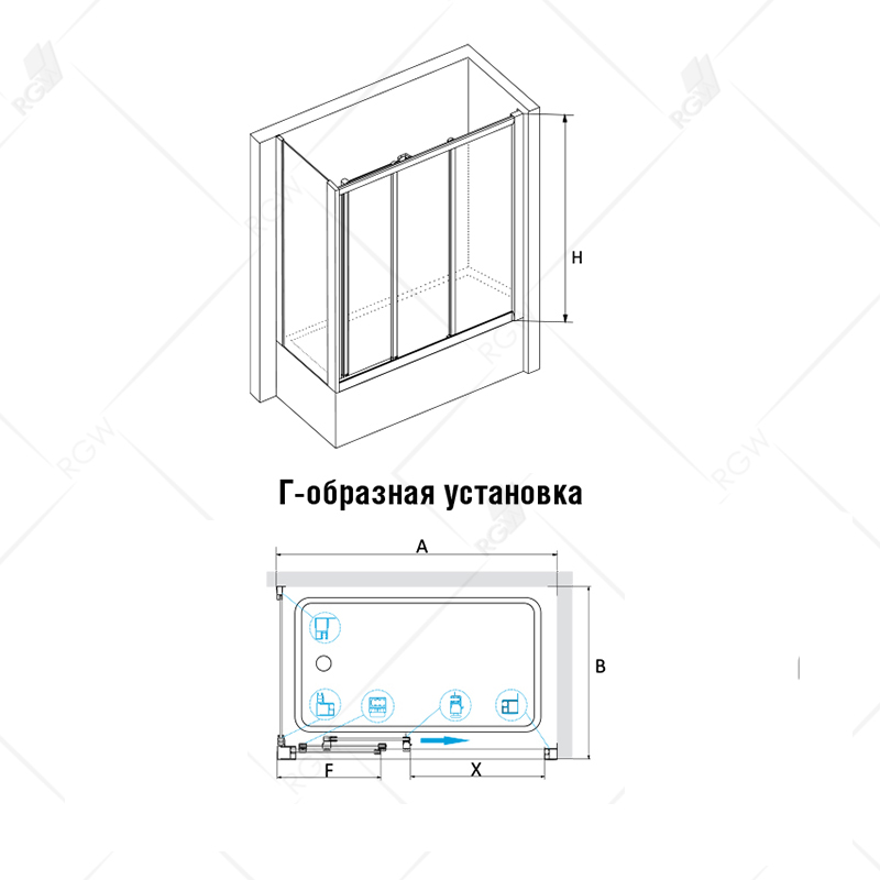 Стеклянная шторка на ванну RGW Screens SC-81 150x70 04118157-11. Два сдвижных стекла, одно неподвижное стекло и боковая панель.