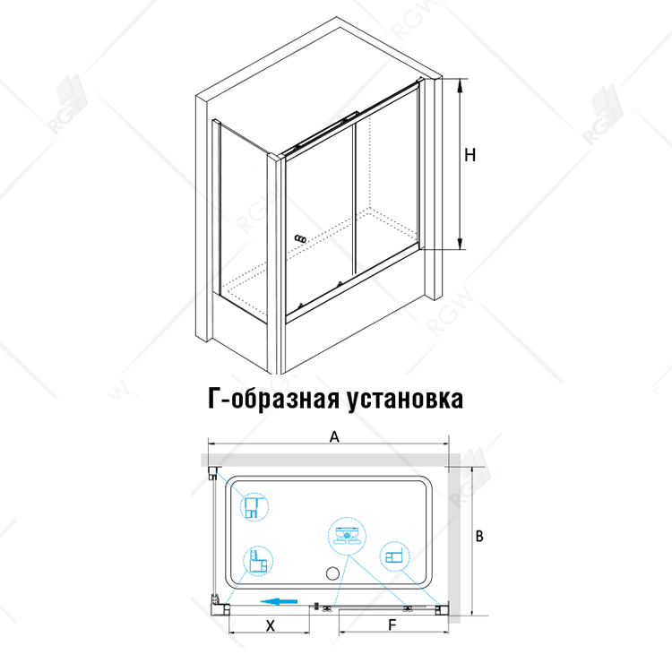 Стеклянная шторка на ванну RGW Screens SC-82 180x70 041182870-11 раздвижная. Одно сдвижное стекло, одно неподвижное стекло и боковая панель.