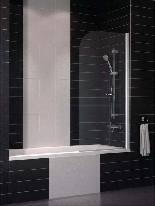 Шторка на ванну Eolo V. Профиль белый, стекло прозрачное. Арт. EV 0075 01 01.