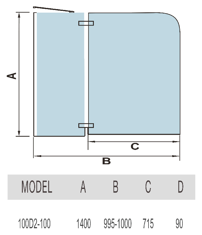 Стеклянная шторка на ванну WeltWasser WW100 100 100D2-100 распашная, двухсекционная. Регулируемый пристенный профиль. Универсальная установка: слева или справа.