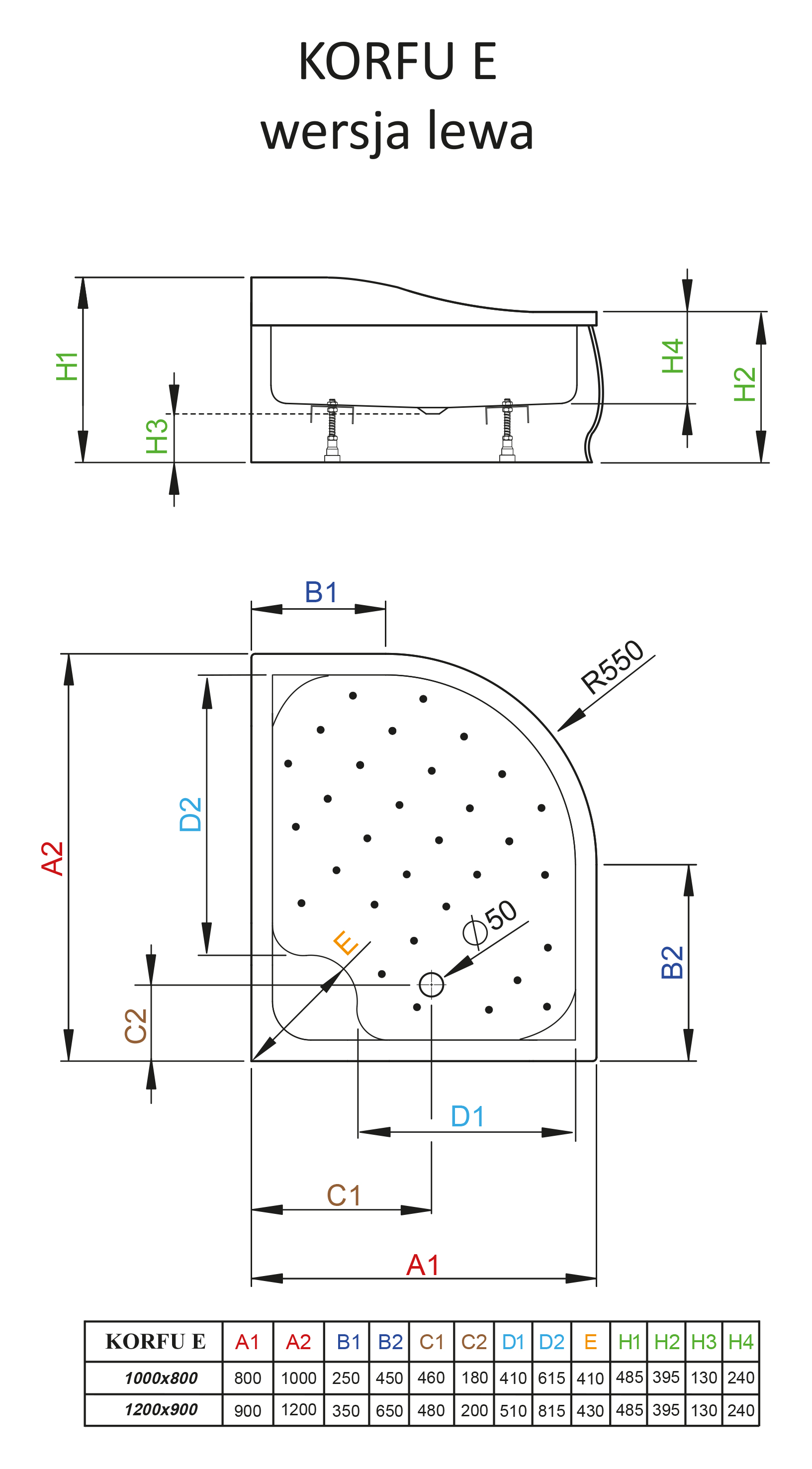 Акриловый душевой поддон Radaway Korfu E 4E91240-03L 90x120x49 высокий, асимметричный, с отлитым сиденьем.