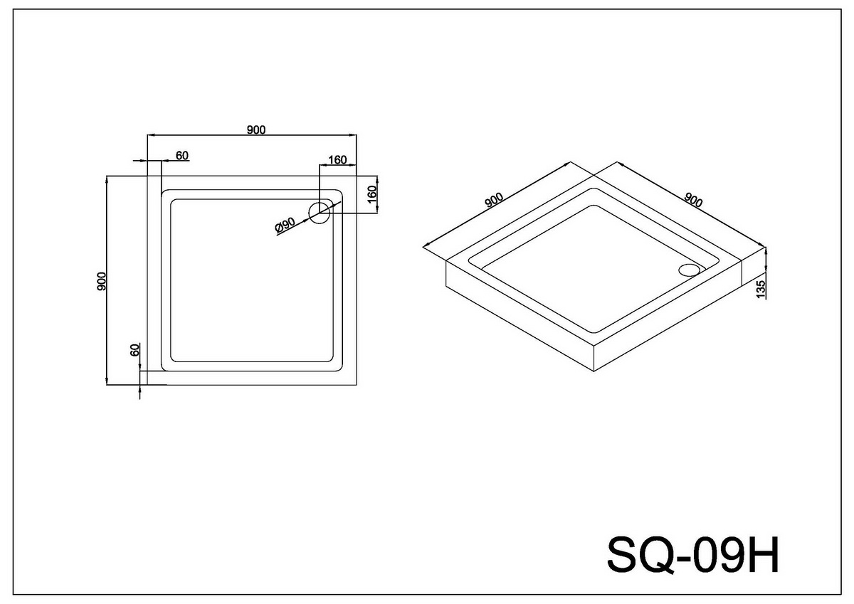 Акриловый поддон для душа Black&White Stellar Wind Easy Plumb SQ-09H 90x90 Белый