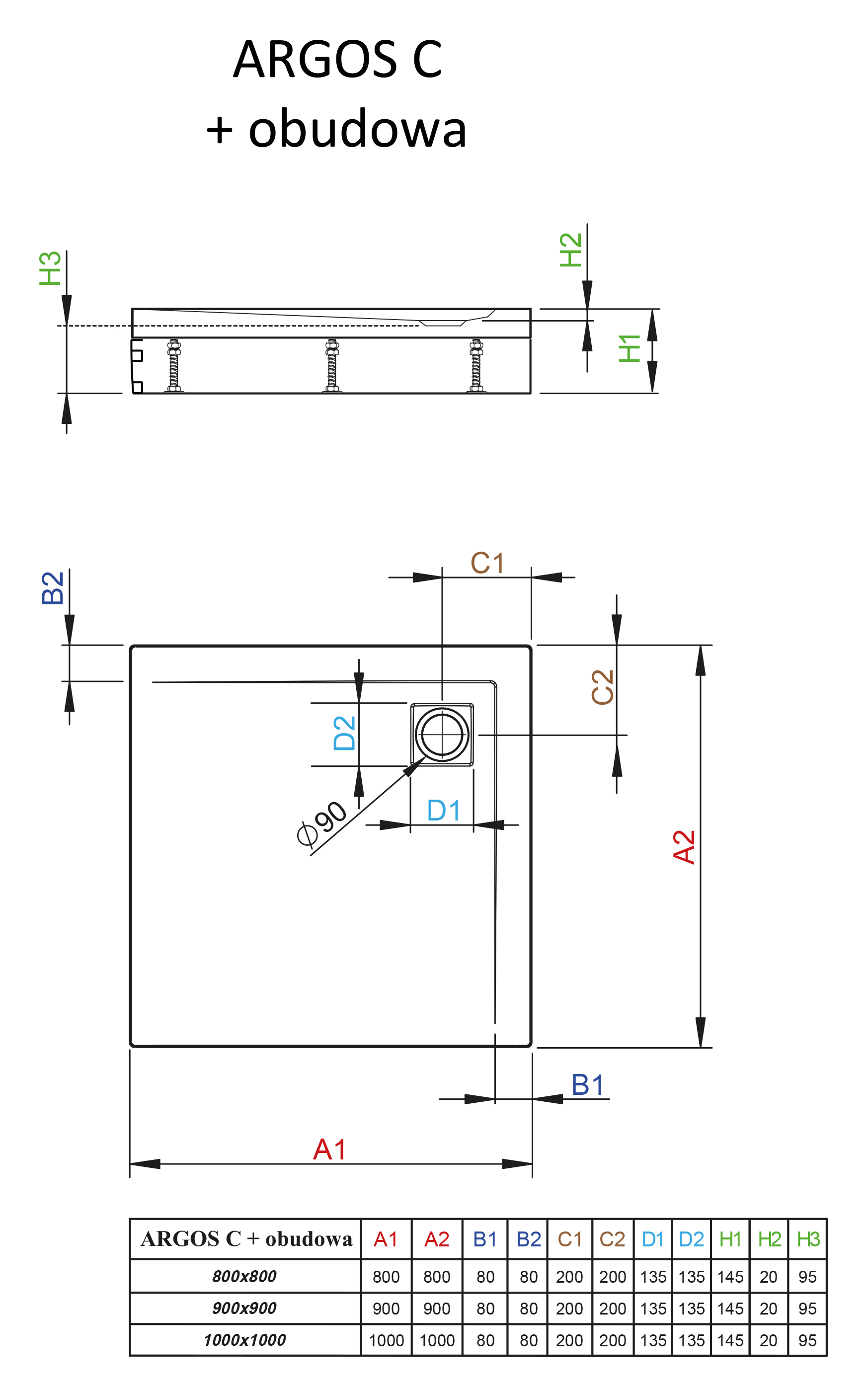 Акриловый душевой поддон Radaway Argos C 4ACN99-02 90x90x15 квадратный, низкий.