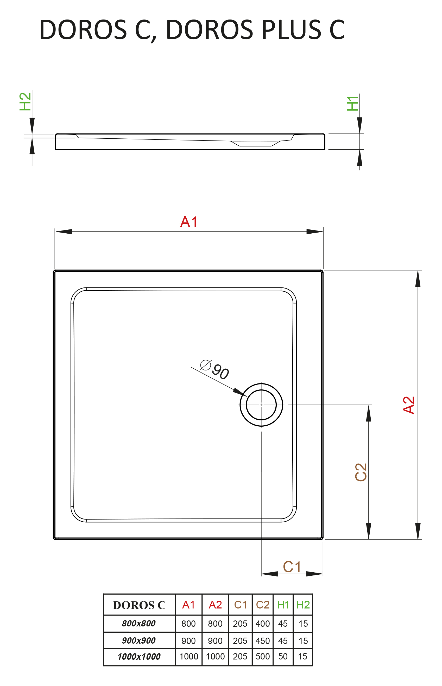 Цельнолитой душевой поддон Radaway Doros C SDRC9090-01 90x90x5 из акрила, низкий, квадратный.