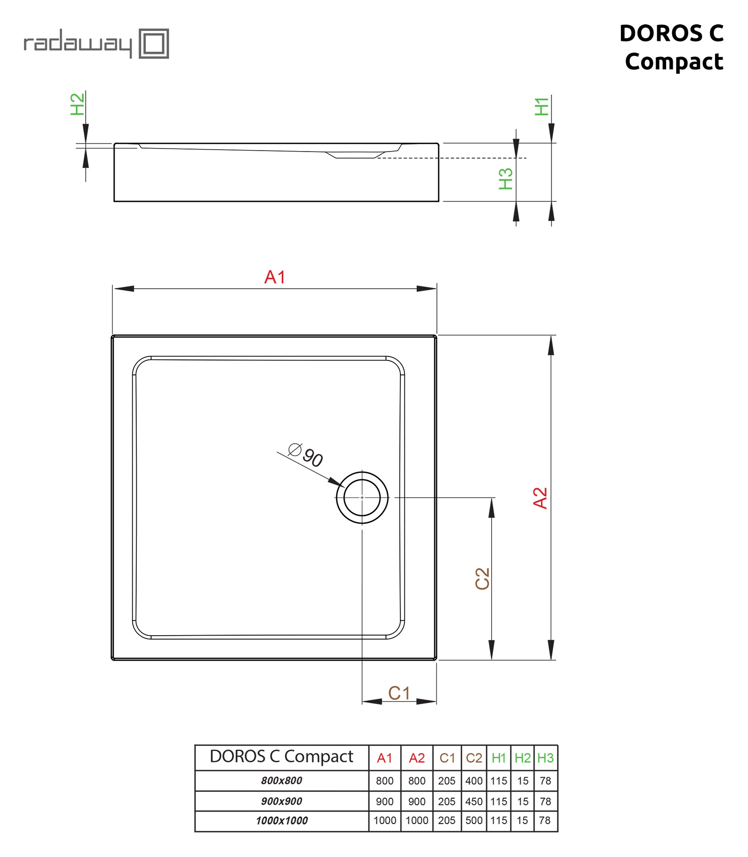 Квадратный душевой поддон из акрила Radaway Doros C Compact 90x90x11,5 SDRC9090-05 с цельнолитой фронтальной панелью, с ножками, с антибактериальной поверхностью. Прочность в сочетании с малым весом. Акрил быстро нагревается и долго сохраняет тепло. Эффективное звукопоглощение. Легкость и простота в очистке. Простой и быстрый монтаж.