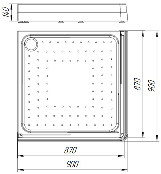 Квадратный акриловый поддон для душа Radomir 90x90x16 1-11-0-0-0-118 прост в монтаже и долговечен. Имеет рельефную антискользящую поверхность дна.