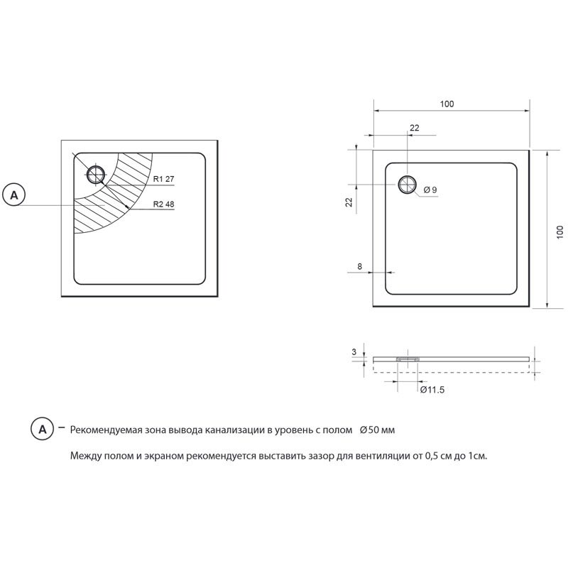 Мраморный душевой поддон Aquanet Gamma Beta Cube 100x100 квадратный.