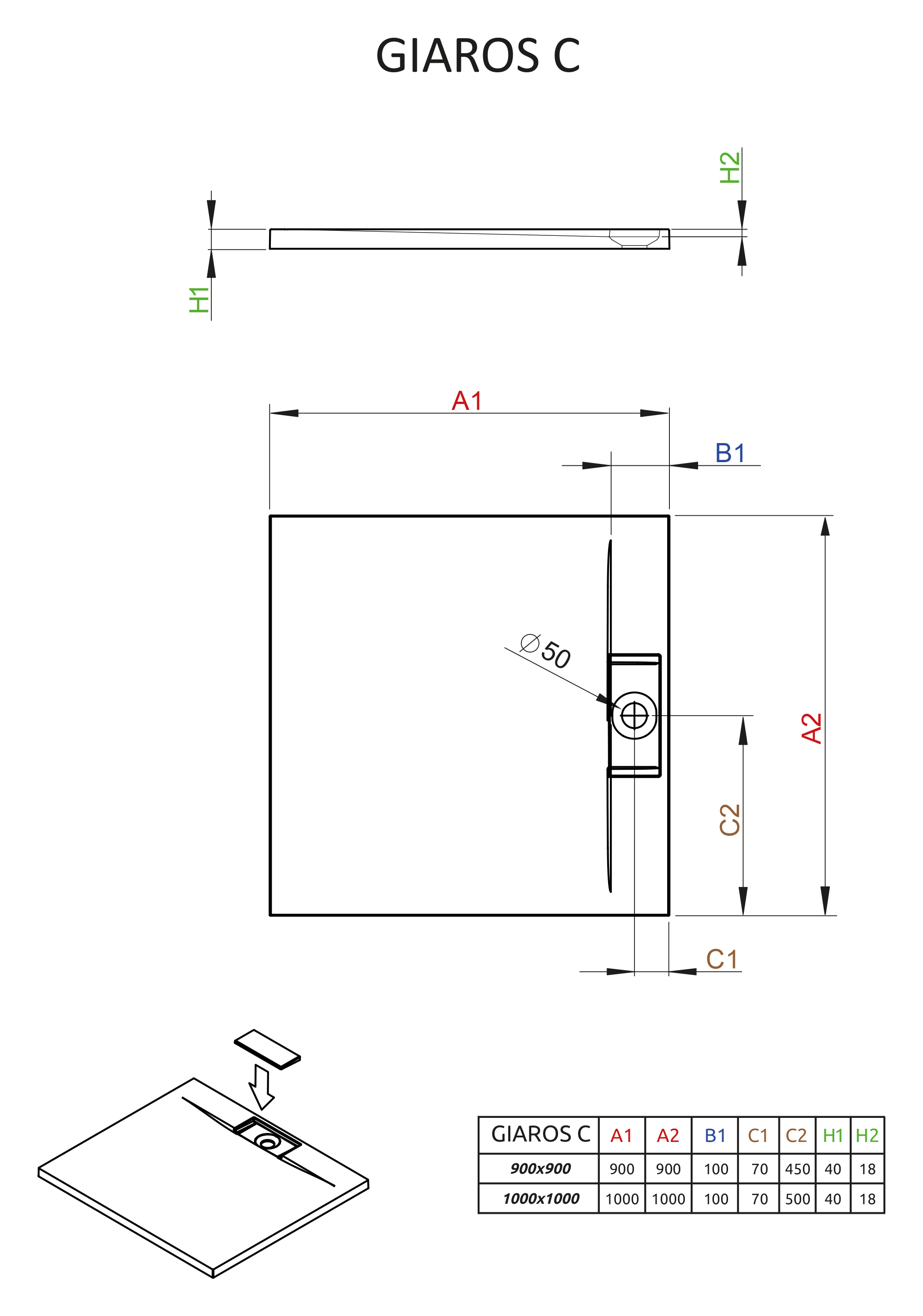 Душевой поддон Radaway Giaros C M3GRC1010 100x100x4 из литьевого камня, низкий, квадратный.