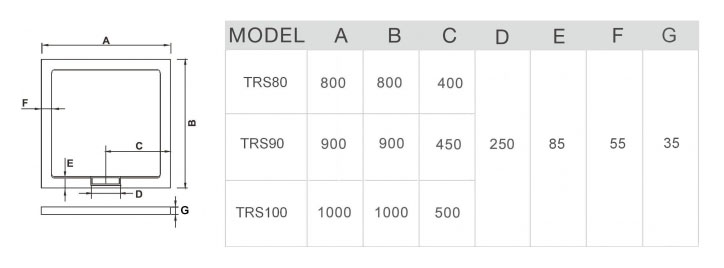 Квадратный душевой поддон из искусственного мрамора WeltWasser WW TR S 90x90 TRS90. Нагрузка до 500 кг.