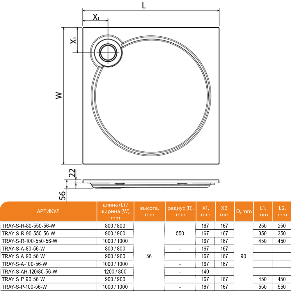 Встраиваемый литой душевой поддон из искусственного мрамора Cezares Tray S A 80x80x6 TRAY-S-A-80-56-W квадратный, низкий.