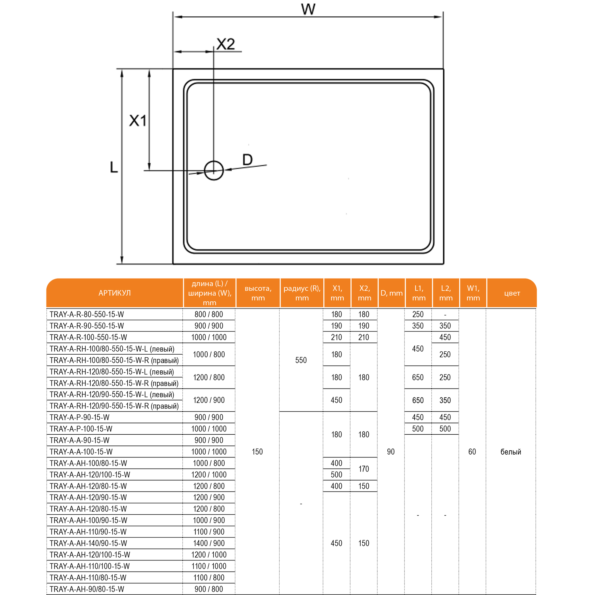 Цельнолитой акриловый душевой поддон Cezares Tray A AH 140x90x15 TRAY-A-AH-140/90-15-W прямоугольный, низкий.