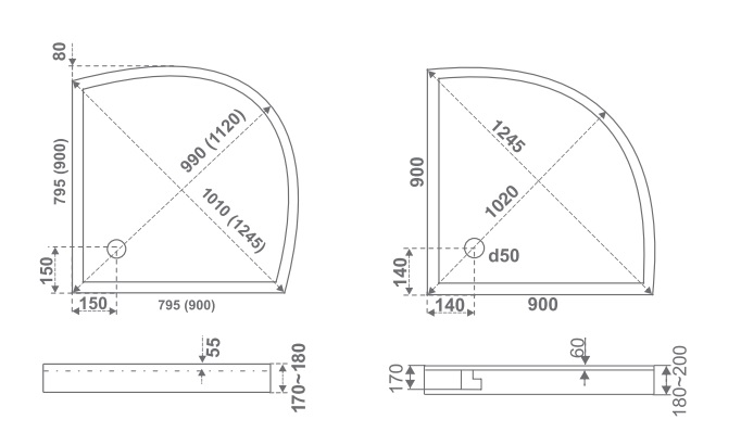 Акриловый поддон для душа Bas Плуто 90x90 выполнен в форме четверти круга.