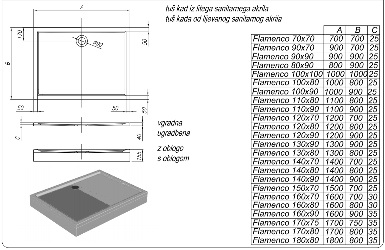 Поддон для душа Kolpa San Flamenco 130x90x15.5, низкий.