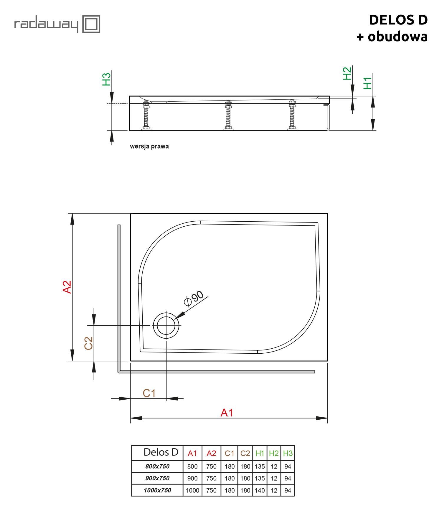 Прямоугольный душевой поддон из акрила Radaway Delos D R 100x75x14 4D17515-03R со съемной фронтальной панелью, с ножками, с антибактериальной поверхностью. Прочность в сочетании с малым весом. Акрил быстро нагревается и долго сохраняет тепло. Эффективное звукопоглощение. Легкость и простота в очистке. Простой и быстрый монтаж.