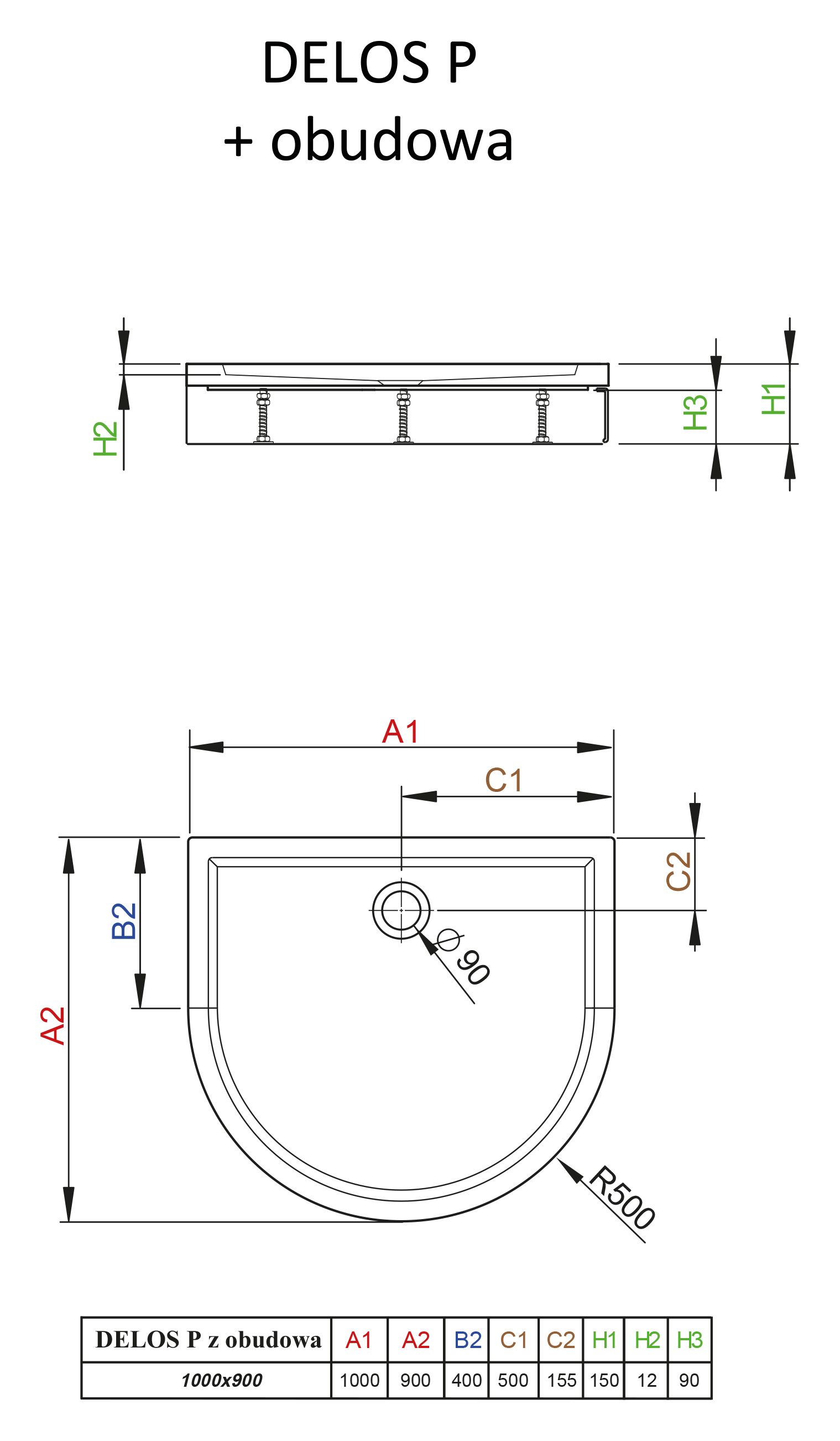 Акриловый душевой поддон Radaway Delos P 4Z19150-03N 90x100x15 низкий, полукруглый.