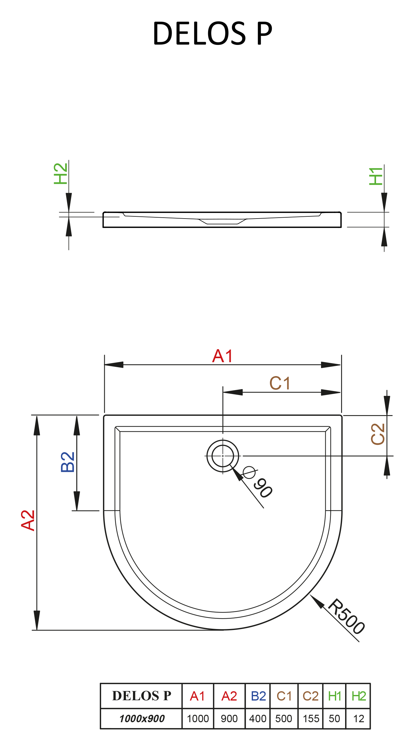 Цельнолитой душевой поддон Radaway Delos P 4Z19035-03N 90x100x5 из акрила, низкий, полукруглый.