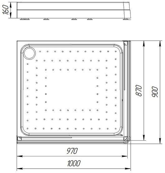 Прямоугольный акриловый поддон для душа Radomir 100x90x16 R 1-11-0-2-0-121 прост в монтаже и долговечен. Имеет рельефную антискользящую поверхность дна.