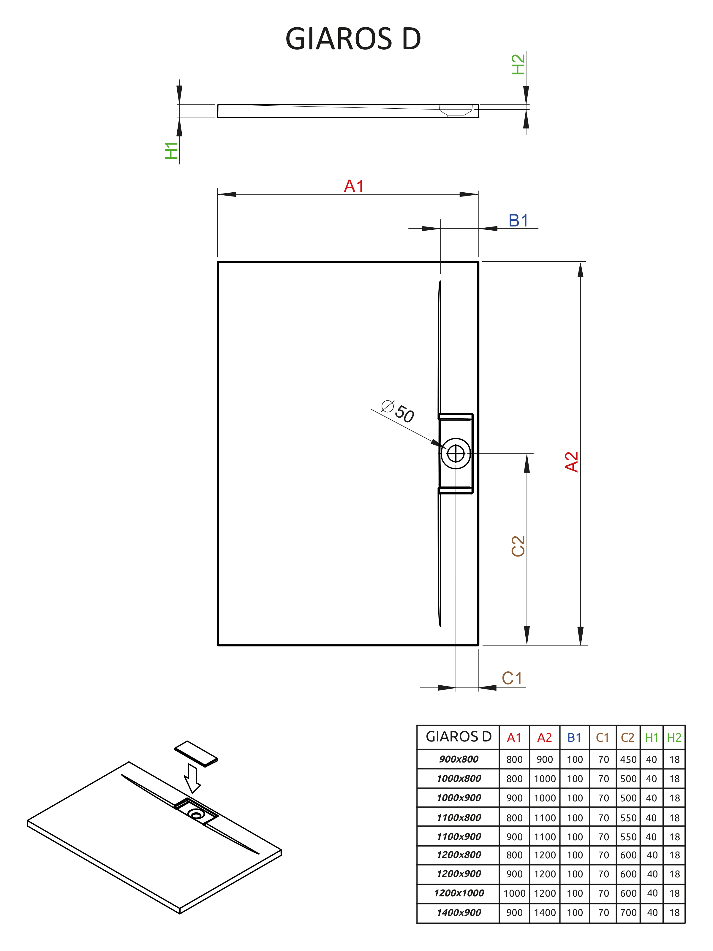 Душевой поддон Radaway Giaros D MKGD1490-03 90x140x4 из литьевого камня, низкий, прямоугольный.