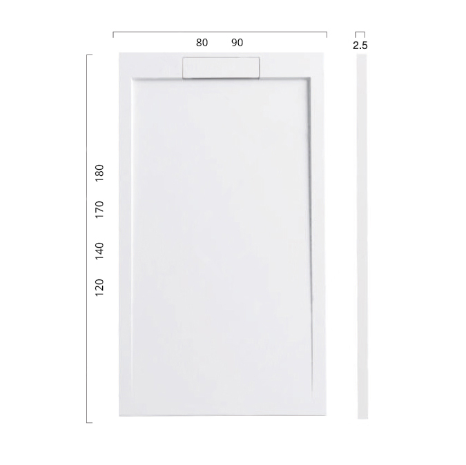 Душевой поддон из искусственного камня RGW STL-148W 140x80x2,5 прямоугольной формы, с уклоном поверхности к сливному отверстию, для лучшего стекания вода. Крышка для сливного отверстия выполнена из искусственного камня в цвет поддона и размещена на борту.
