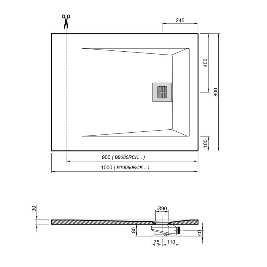 - Слив диаметром 90 мм с решеткой и нержавеющей стали. Пропускная способность: 0,6 л в минуту.