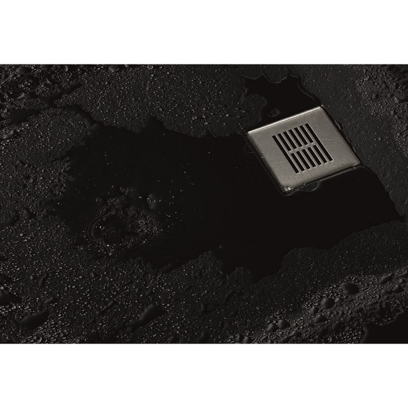 - Слив диаметром 90 мм с решеткой и нержавеющей стали. Пропускная способность: 0,6 л в минуту.