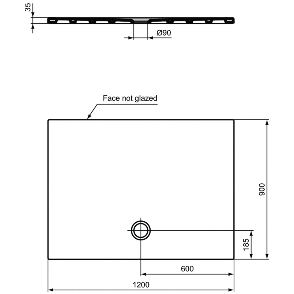 - Отверстие слива 90 мм.