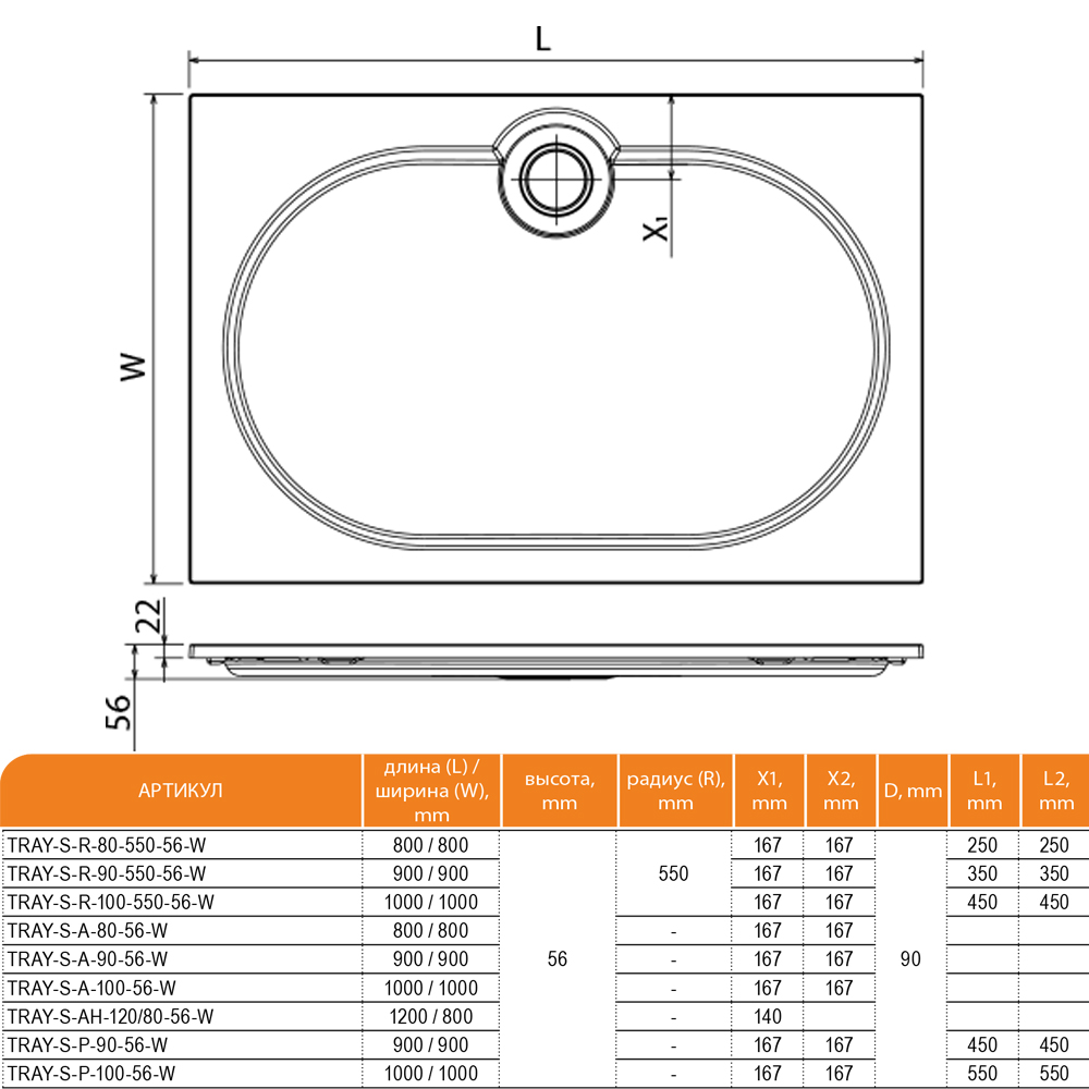 Встраиваемый литой душевой поддон из искусственного мрамора Cezares Tray S AH 120x80x6 TRAY-S-AH-120/80-56-W прямоугольный, низкий.