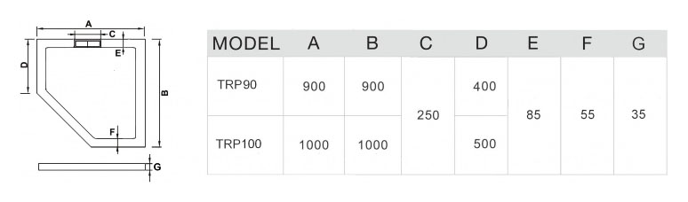 Душевой поддон из искусственного мрамора WeltWasser WW TR P 90x90 в форме призмы. Нагрузка до 500 кг.