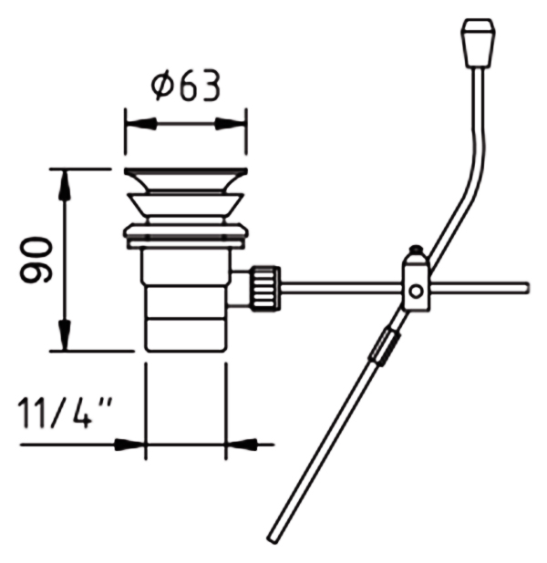 Донный клапан для раковины Clever 99130. Управление рычагом.