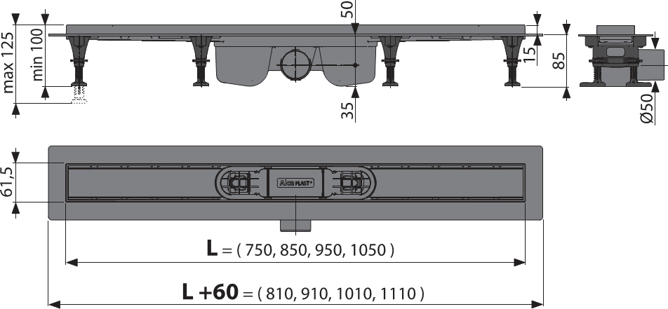 Душевой лоток AlcaPlast APZ12-850 устанавливается внутри помещений для водоотведения в душевых на уровне пола. Может располагаться в пространстве или непосредственно у стены.Свойства: