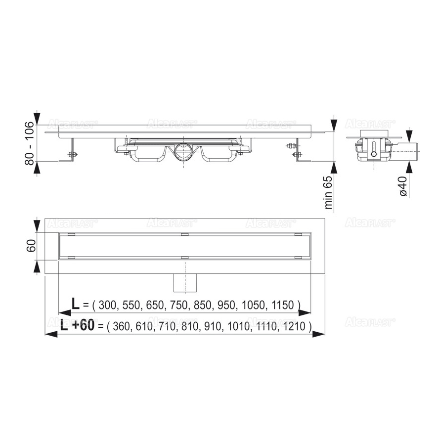 Душевой лоток AlcaPlast Professional Low APZ106-1150 - используют внутри помещений для водоотведения в душевых на уровне пола. Может располагаться в пространстве или непосредственно у стены. Для безбарьерного доступа.Технические характеристики: