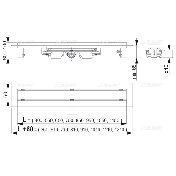 - Сточная труба: 40 mm.