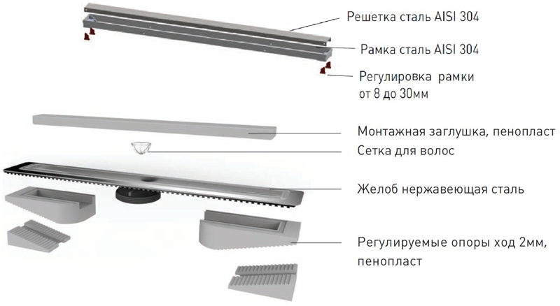 - Регулировка рамки и решетки по высоте от 8 до 30 мм.