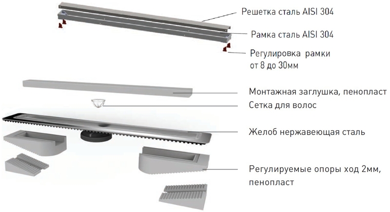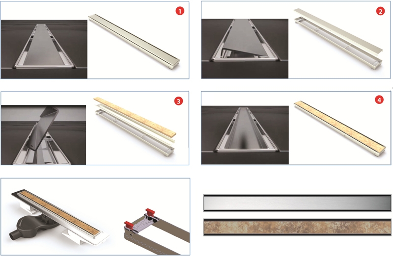 - Двусторонняя установка решетки: металл и вклейка плитки с регулировкой по толщине плитки от 8 до 30 мм.