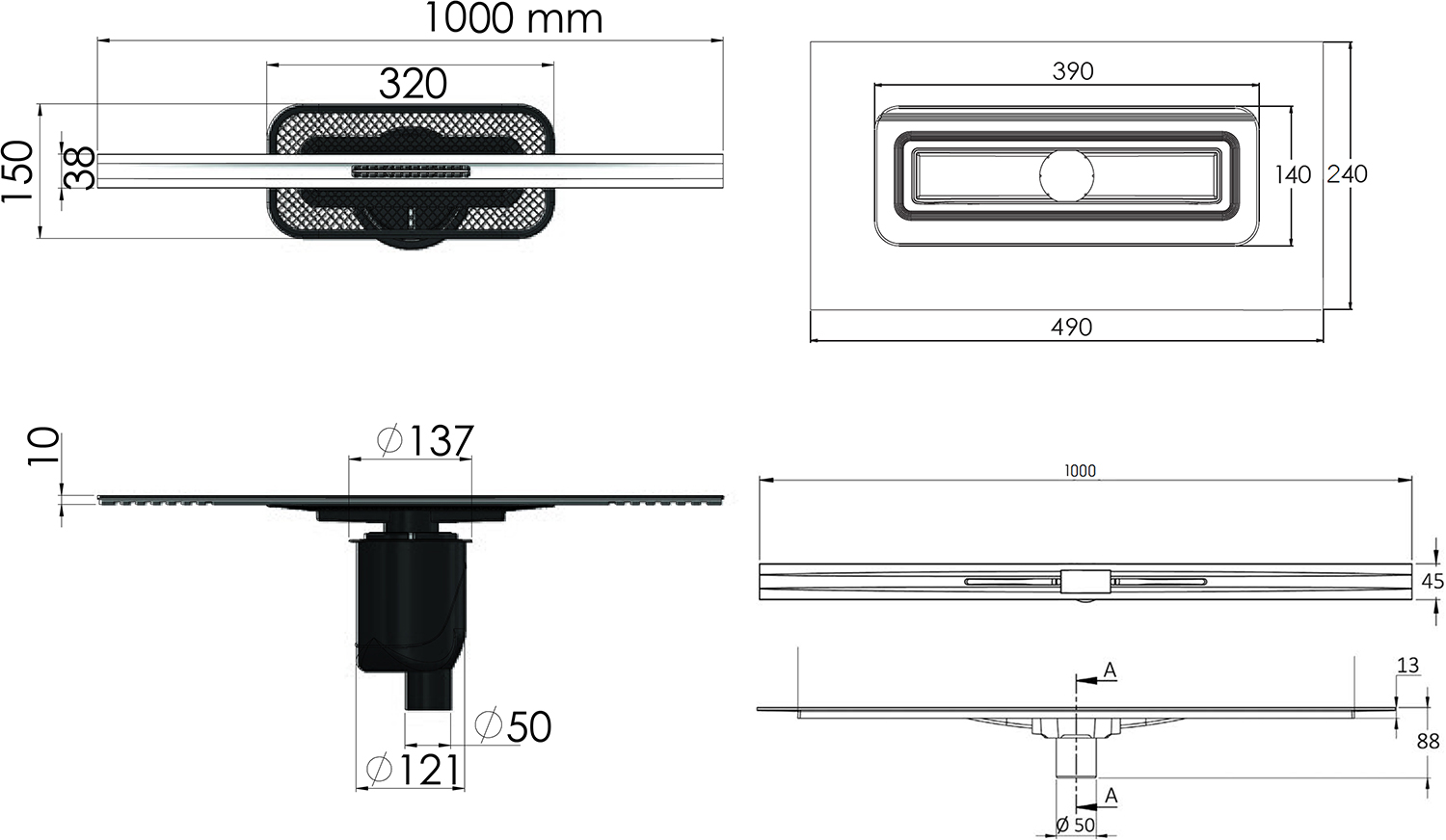 - Вид решетки: с щелью для стока воды.
