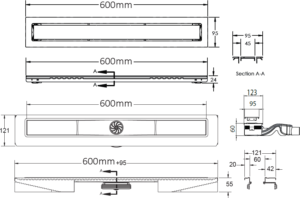 Душевой лоток Berges Wasserhaus Top Stark 600 091149 с решеткой. Превосходно сочетается с любым интерьером ванной комнаты благодаря компактным размерам и функциональности.