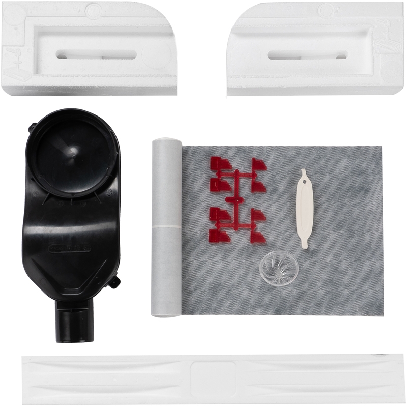 - Монтажная заглушка и регулируемые по высоте ножки (пенопласт).