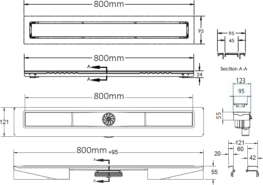 Душевой лоток Berges Wasserhaus Top Stark 800 090051 с решеткой. Превосходно сочетается с любым интерьером ванной комнаты благодаря компактным размерам и функциональности.