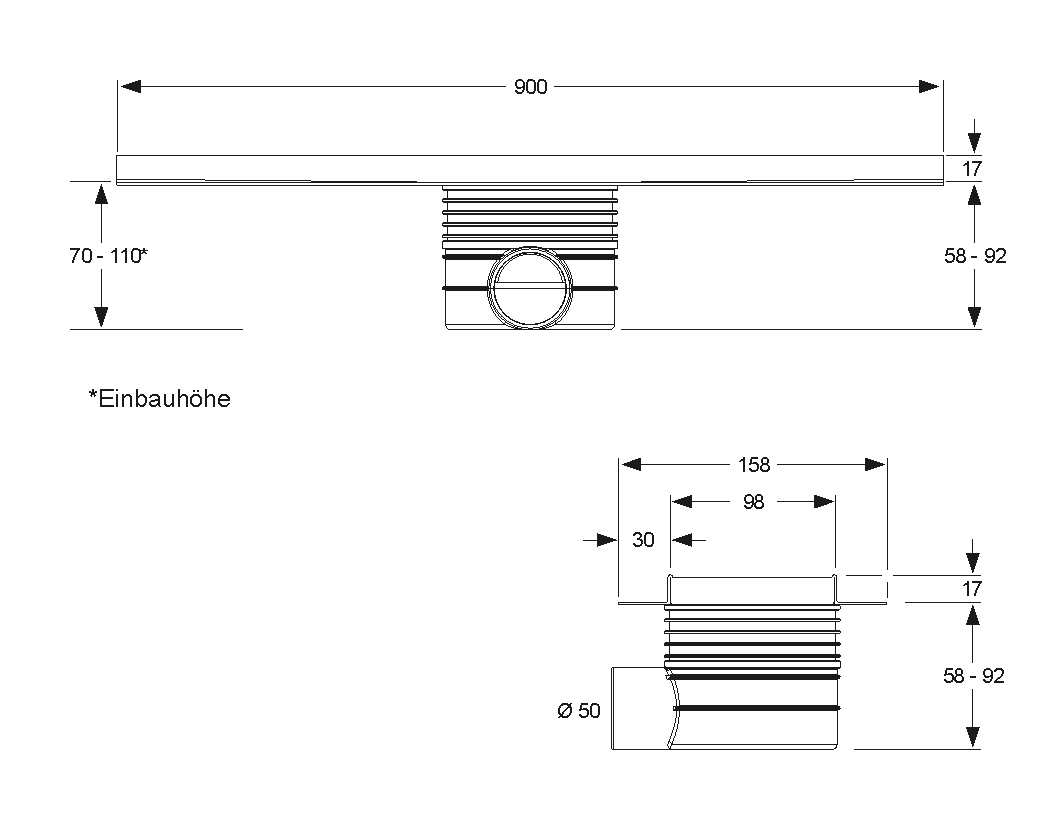 Душевой лоток Mepa Duschrinne 150304 90 см с боковым выпуском
