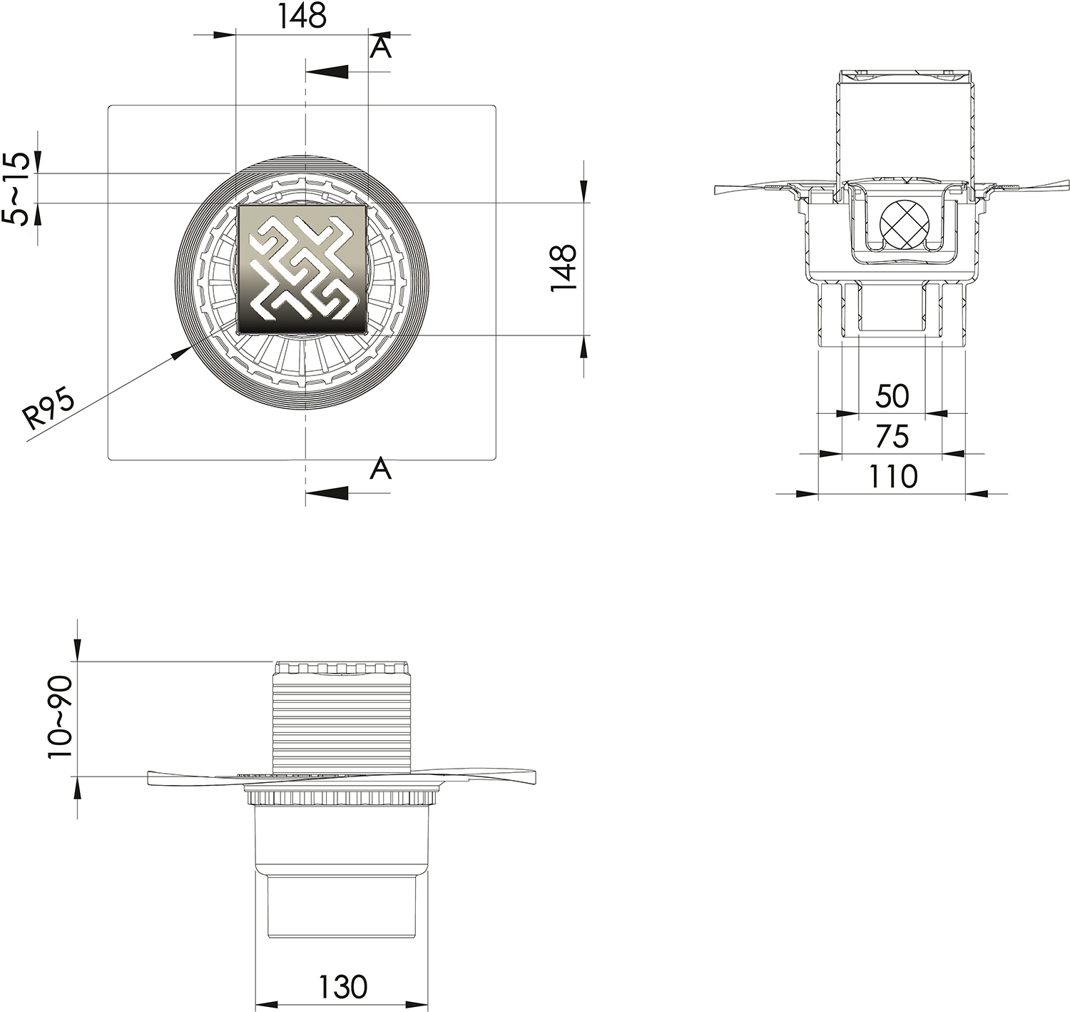 Душевой трап Berges Wasserhaus Zentrum Antik 150x150 090465 с решеткой. Превосходно сочетается с любым интерьером ванной комнаты благодаря компактным размерам и функциональности.