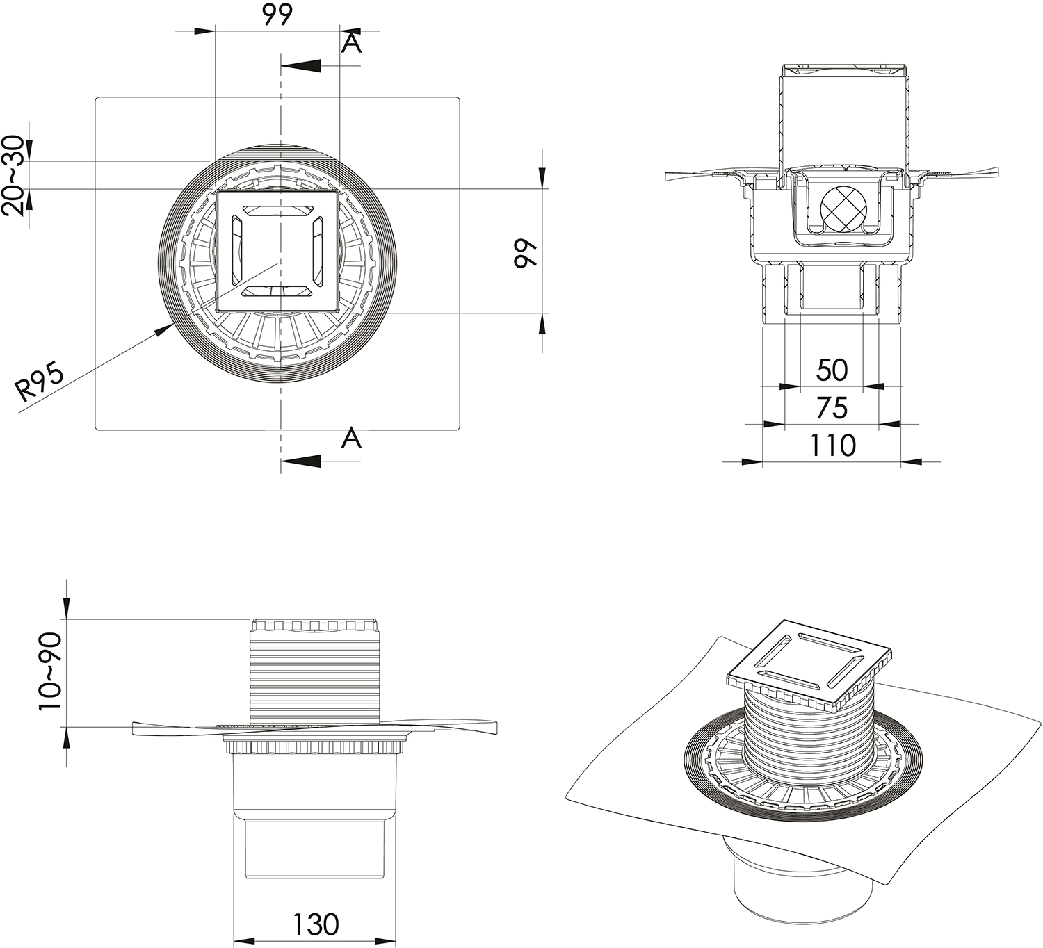 Душевой трап Berges Wasserhaus Zentrum Norma 100x100 090462 с решеткой. Превосходно сочетается с любым интерьером ванной комнаты благодаря компактным размерам и функциональности.