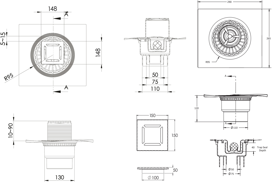- Сифон слив РР: вертикальный выпуск D50/70/110 мм.