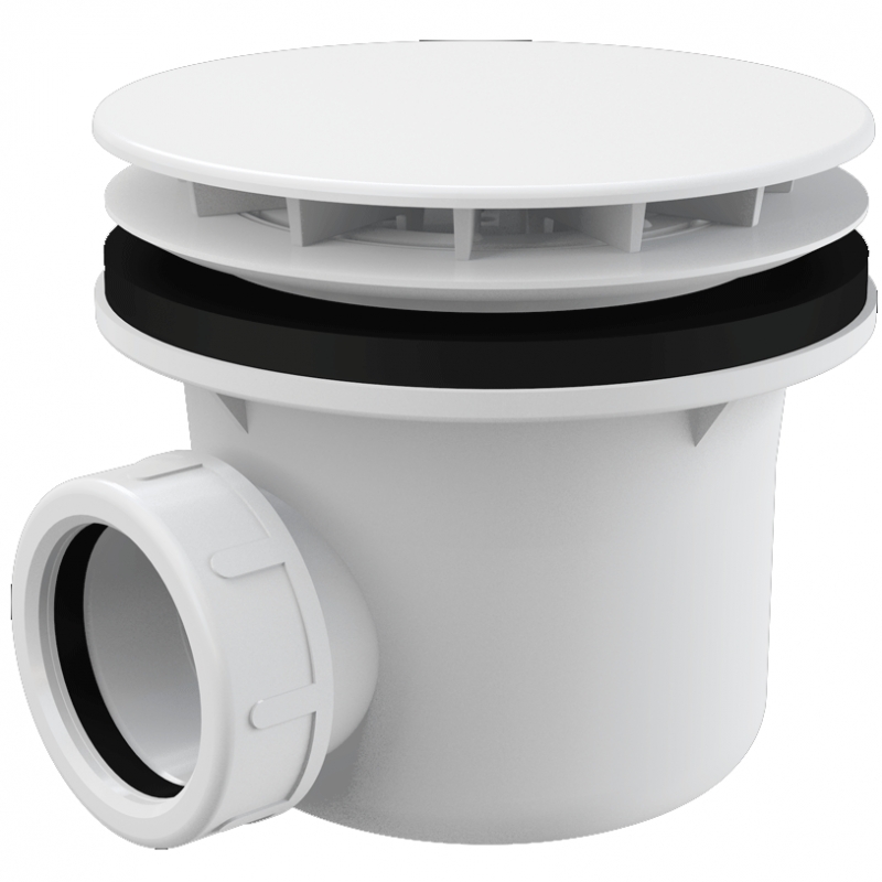 - Для душевых поддонов со сливным отверстием 90 мм.