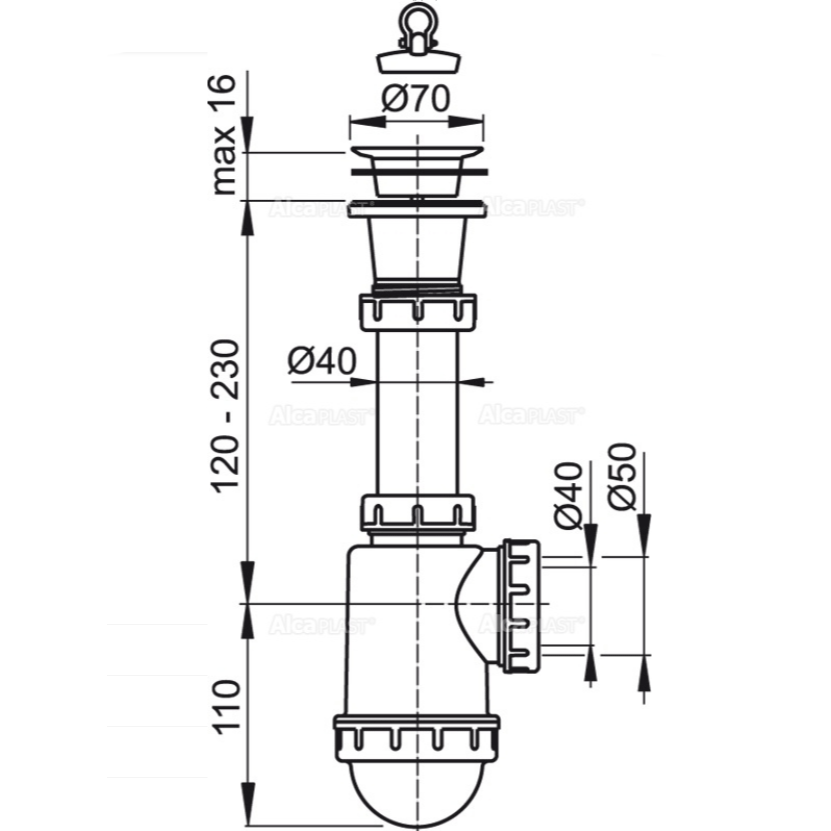Сифон для кухонной мойки Alcaplast A442-DN50/40 изготавливается из высококачественных материалов.
