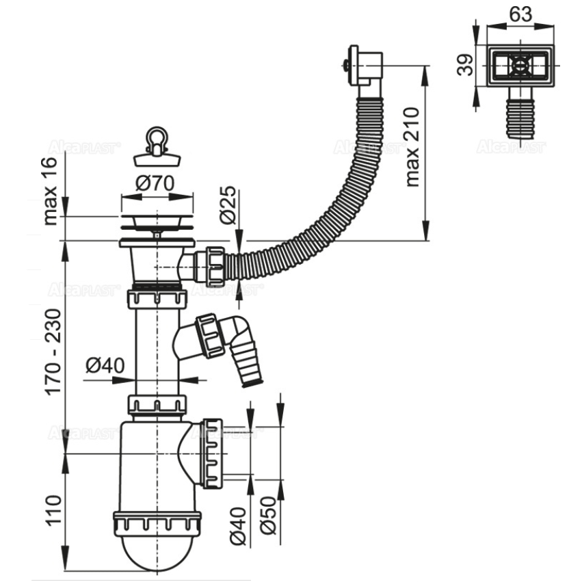 Сифон для кухонной мойки Alcaplast A444P-DN50/40 изготавливается из высококачественных материалов.