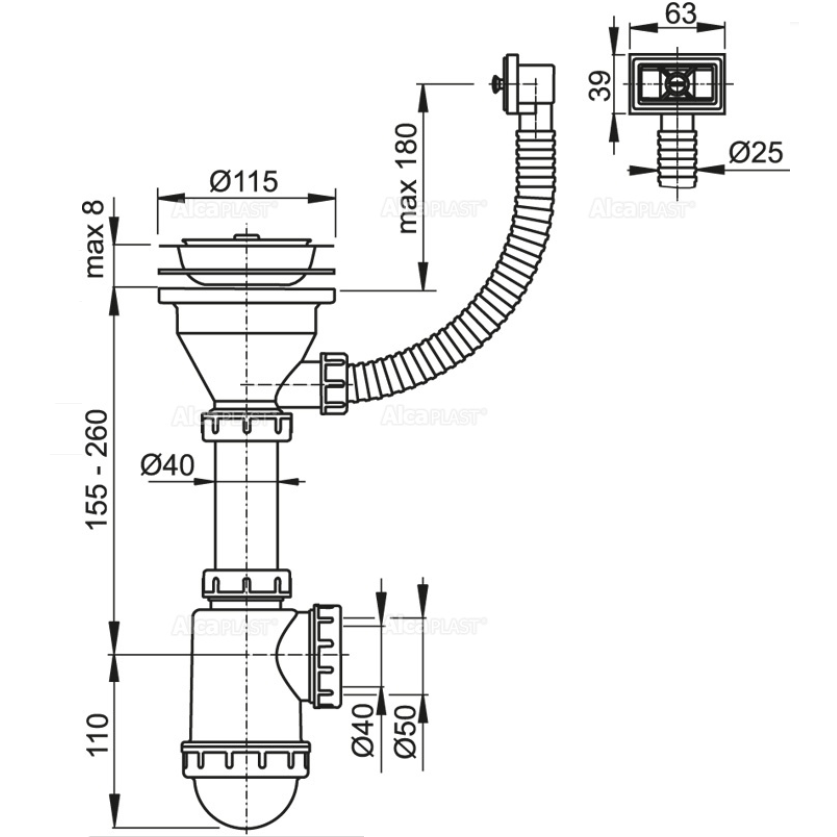 Сифон для кухонной мойки Alcaplast A447-DN50/40 изготавливается из высококачественных материалов.