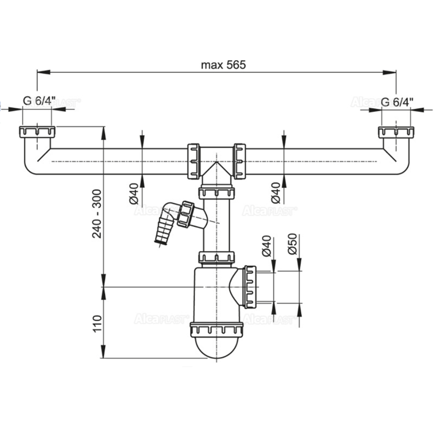 Сифон для кухонной мойки Alcaplast A448P-DN50/40 Белый