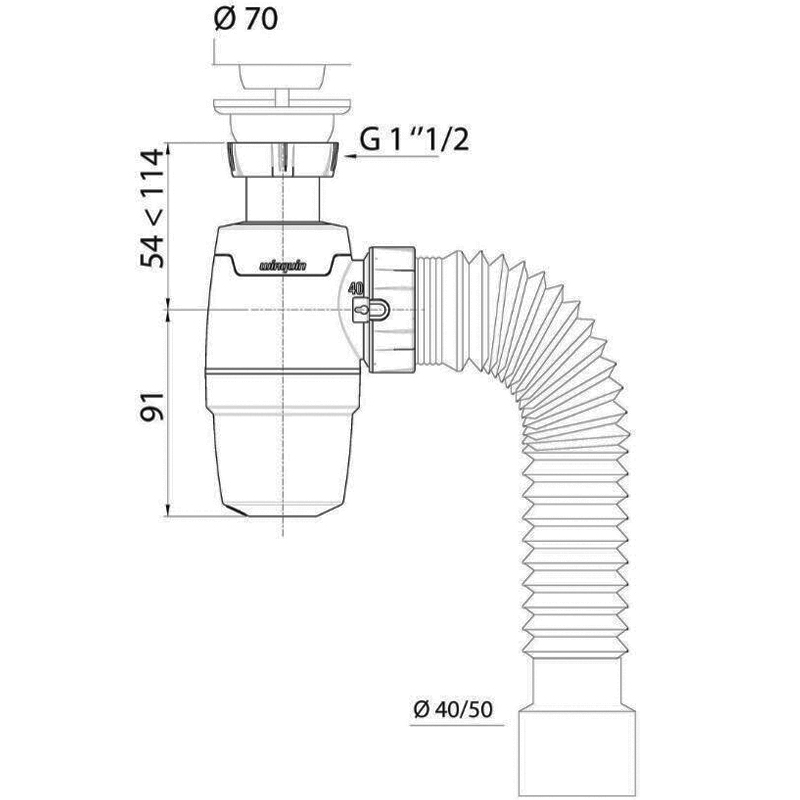 Инновационный сифон для кухонной мойки Wirquin Neo 30987075 бутылочного типа с выпуском.