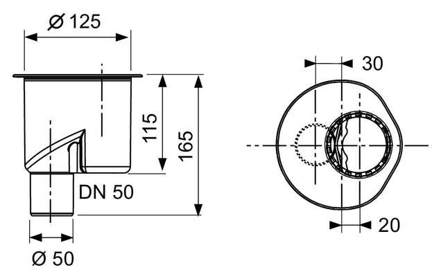 Вертикальный сифон Tece Drainline DN50 1,3 л/с 650003.