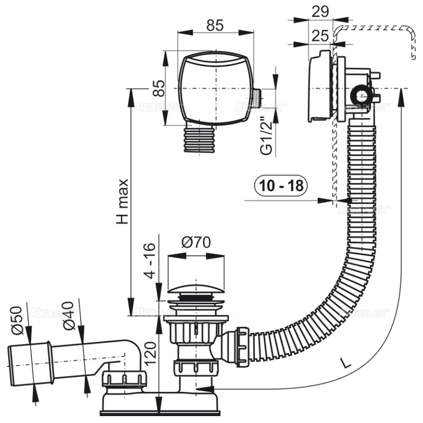 Click-Clack слив-перелив для ванны Alcaplast A509KM-100 изготавливается из высококачественных материалов.